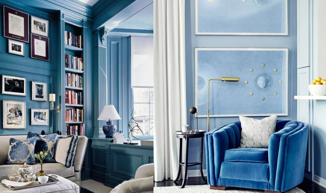 Выберите синий цвет как элегантную альтернативу черному. Это добавит глубину декора, не беспокоясь о доминировании всей стилизации. Синий и белый — это классическая, проверенная комбинация. Если хотите использовать плавные переходы, то белый замените светло-голубым или светло-серым оттенком. Если вас интересуют более насыщенные цвета, выберите темно-синий, который является элегантной альтернативой черному, и в то же время добавит стилизации глубины без подавляющего эффекта. Используйте деревянные изделия с глянцевой окраской так, чтобы они могли выделяться на фоне стен в темно-синем цвете.