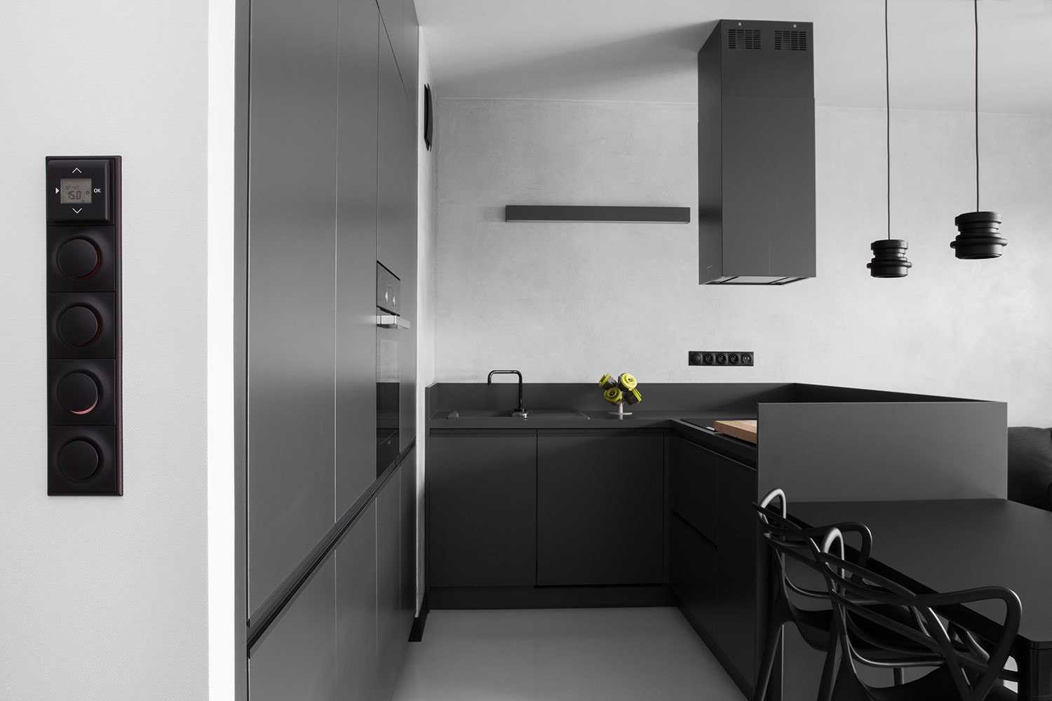 На роль «шкатулки» идеально подойдут: рабочий кабинет, гардеробная, кухонная зона, ванная комната и санузел. Использовать яркий или тёмный монохром в масштабе гостиной — спорная идея для жилого интерьера, выглядеть будет безусловно эффектно, но может быстро утомить.