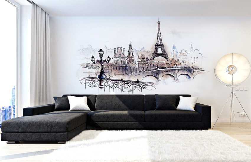 Часть акцентной стены за рабочим местом покрасили черной графитовой краской. Мелом здесь выполнили оригинальную роспись. Чтобы ее сохранить, поверхность покрыли матовым лаком на водной основе.
