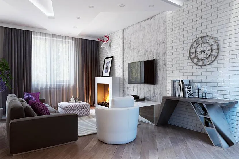 Отблески живого огня моментально привлекают к себе внимание, да и оригинальный столик тоже трудно пропустить. Любители природы могут обратиться к комнатным растениям, в то время как утончённые эстеты отдадут должное чистоте белого цвета