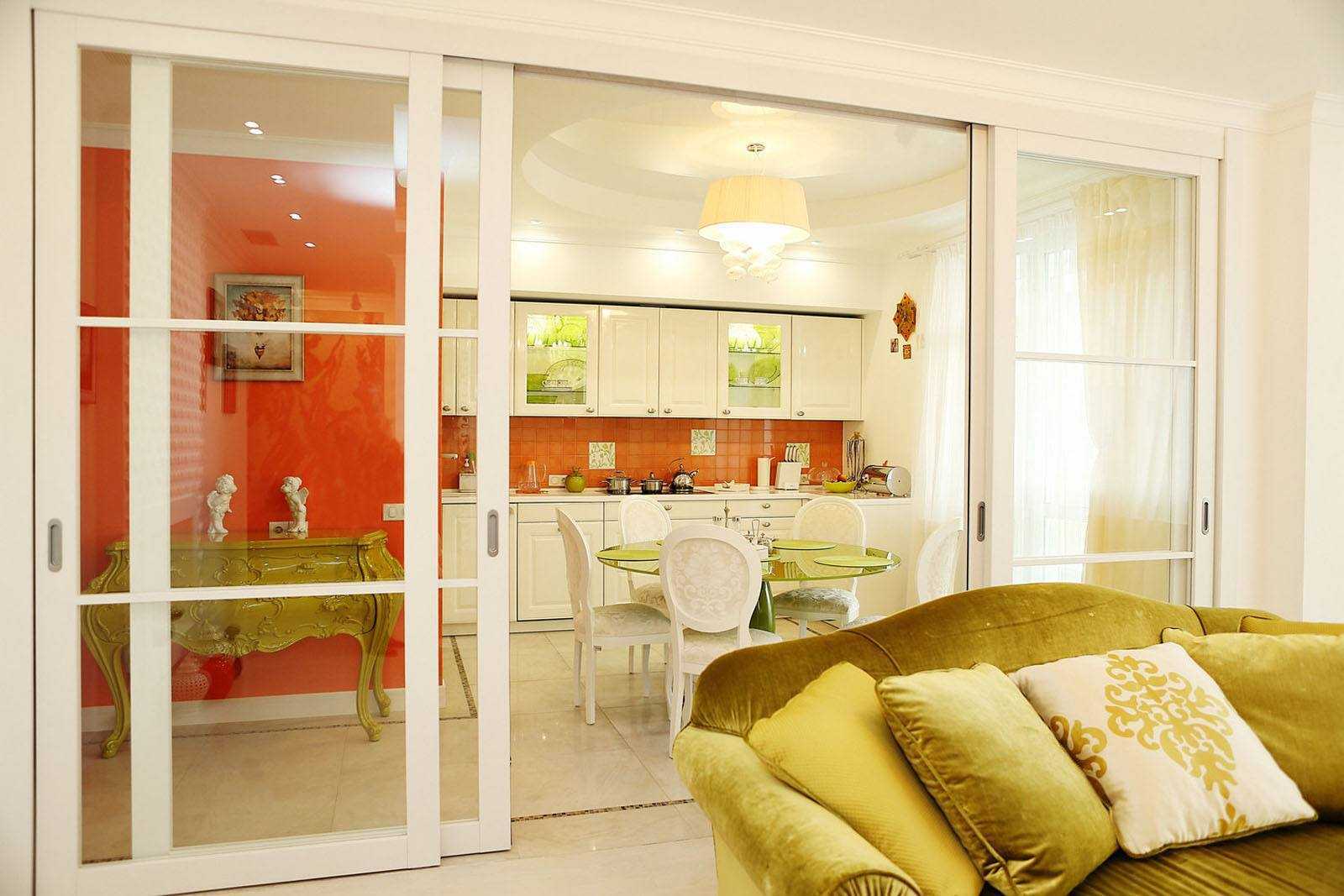 5.Раздвижные или раскладные двери, которые в любой момент разделят помещения на две части. Поверьте, это неощутимо, когда двери прозрачные – например, стеклянные.
