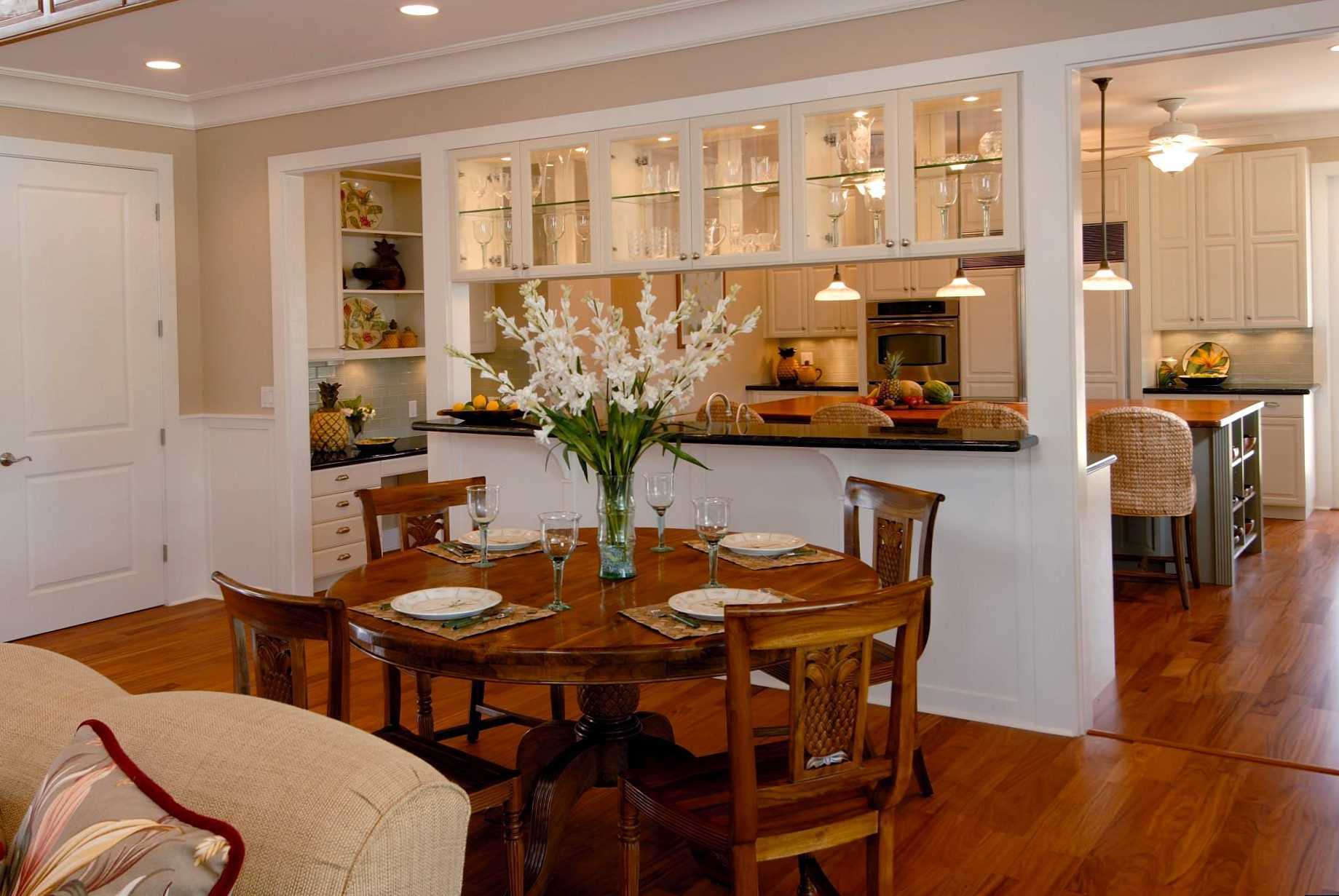 Если вы отказываетесь от большого стола в гостиной, следует выбрать кухонный остров. Помните, что зона, где вы будете есть, необходима. Предположение, что вы будете потреблять все обеденные блюда на диване, на практике неудобно, так как мешает приему гостей и оказывает крайне негативное влияние на личное здоровье.