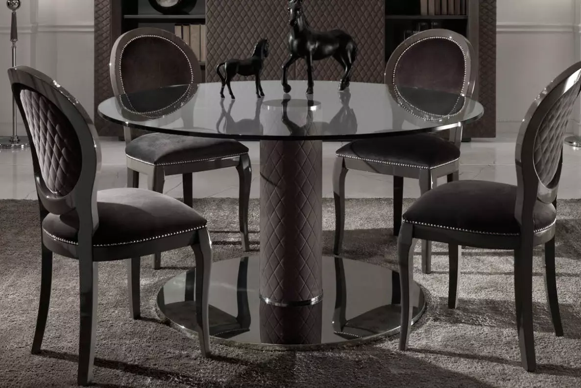 Круглый стол с удобными стульями с высокой и мягкой спинкой будут последним аккордом в создании интерьера неоклассики на вашей кухне.