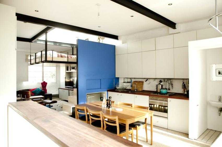 | Учитывайте особенности архитектуры | Вам повезло, если в квартире потолки с нестандартно большой высотой. Даже в совсем маленькой квартире можно использовать это преимущество и соорудить второй ярус, например, для спального места. Кроме потолков, следует максимально использовать ниши, изгибы стен. В них можно разместить письменный стол, холодильник или другие необходимые вещи. |