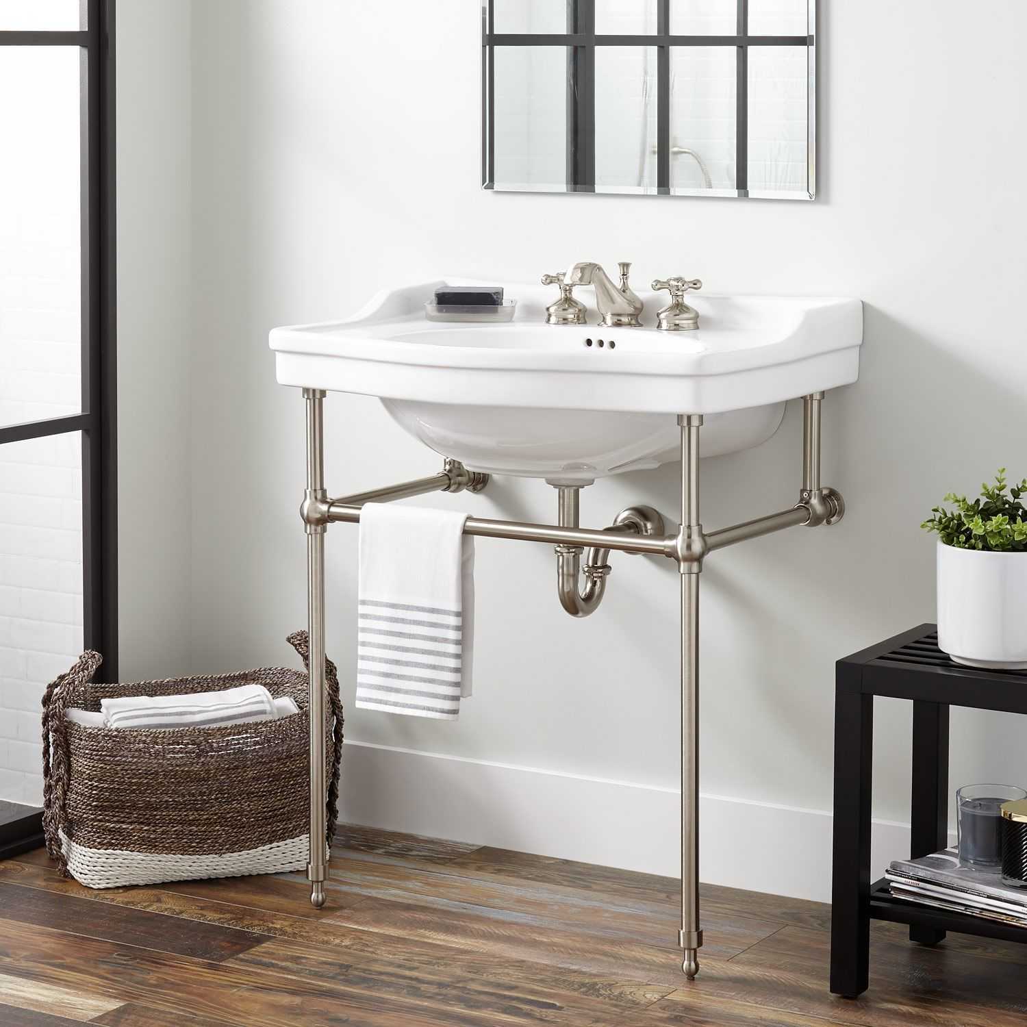 Владельцам раковин-тюльпанов можно задействовать пустое место под раковиной, установив радиусную этажерку.