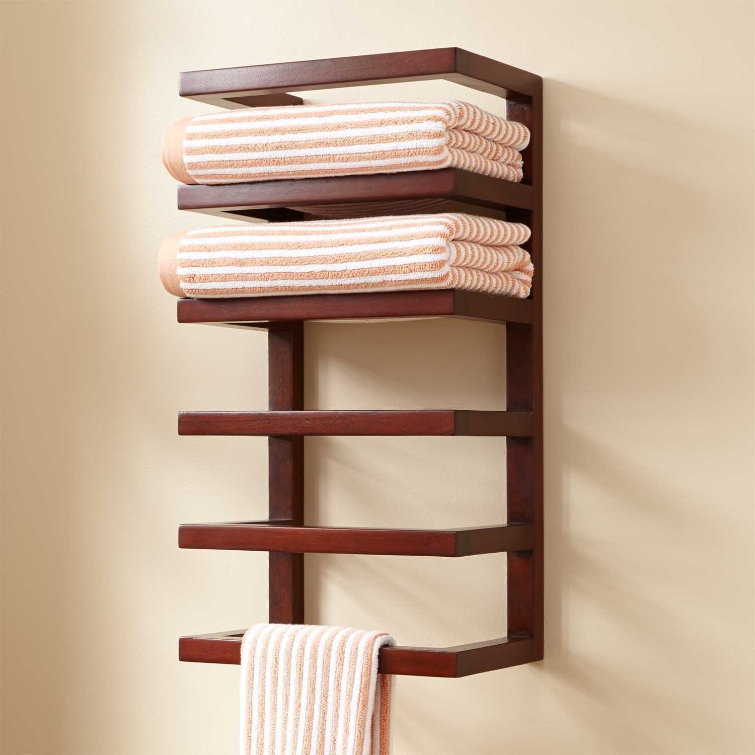 - На неглубокой и невысокой полке можно складывать полотенца в две либо три стопочки или одним вертикальным рядом.