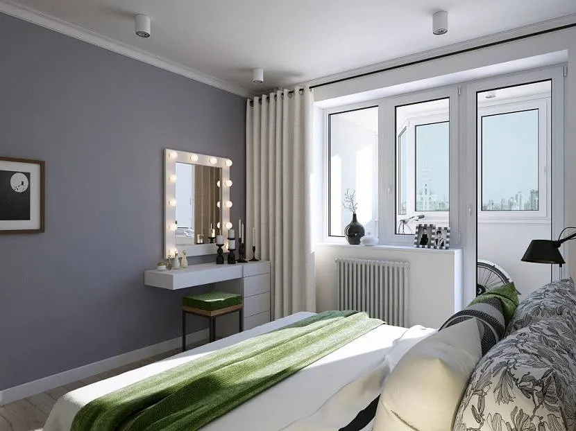 Панели или листы из древесно-волокнистого материала позволяют создать оригинальный и интересный дизайн спальни с туалетным столиком.