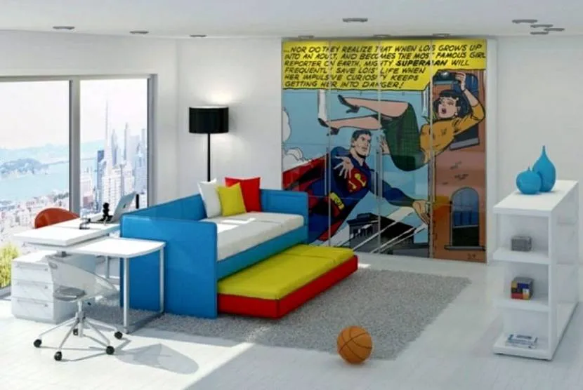 Если вы не хотите рисковать и не уверены, как в итоге все получится, если красить стены придется самим, используйте обои с изображениями в стиле поп-арт.