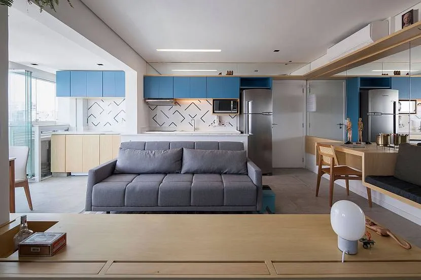 Комната, совмещенная с балконом, с несколькими типами освещенияИсточник homify.com.br