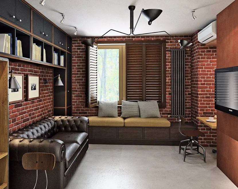Неограненный лофт в интерьере маленькой комнатыИсточник duvarkagitstore.com