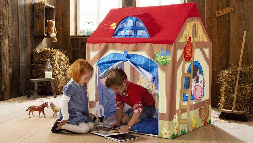 Домик-палатка быстро разбирается и собирается. Обычно это плотная ткань на пластиковом или металлическом каркасе. При необходимости ее можно даже постирать, когда запылится. Выбор конструкций огромный — начиная обычными вигвамами и заканчивая полноценными домиками, имеющими отверстия для дверей с окнами. Некоторые модели дополнены интересными игровыми элементами — например, кольцом для мяча. Для небольших квартир лучше не выбирать громоздкие модели из ткани. И тут тоже работает правило — чем больше «фишек», тем домик дороже.
