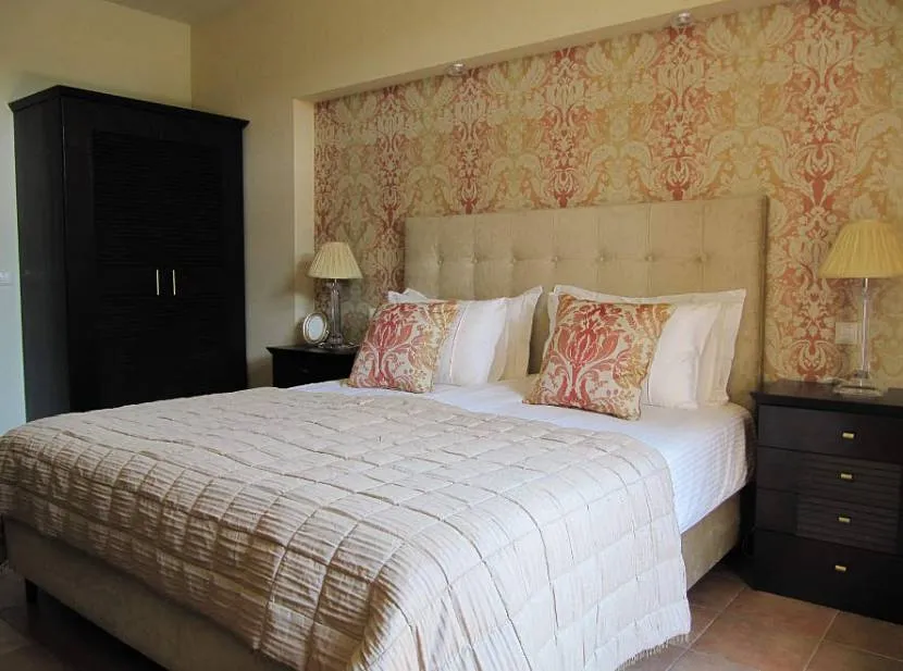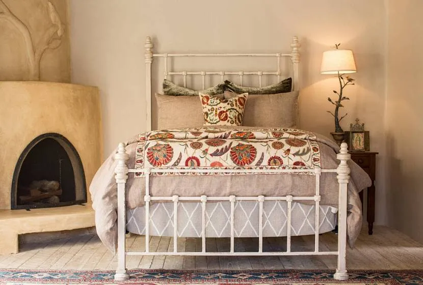 Цветовой акцент в спальне может быть оформлен с помощью узоров в этническом стиле. Необычный орнамент прекрасно подчеркнет стиль интерьера и вкус хозяев. Такой дизайн прекрасно будет выглядеть в нейтральной комнате со спокойной цветовой гаммой.