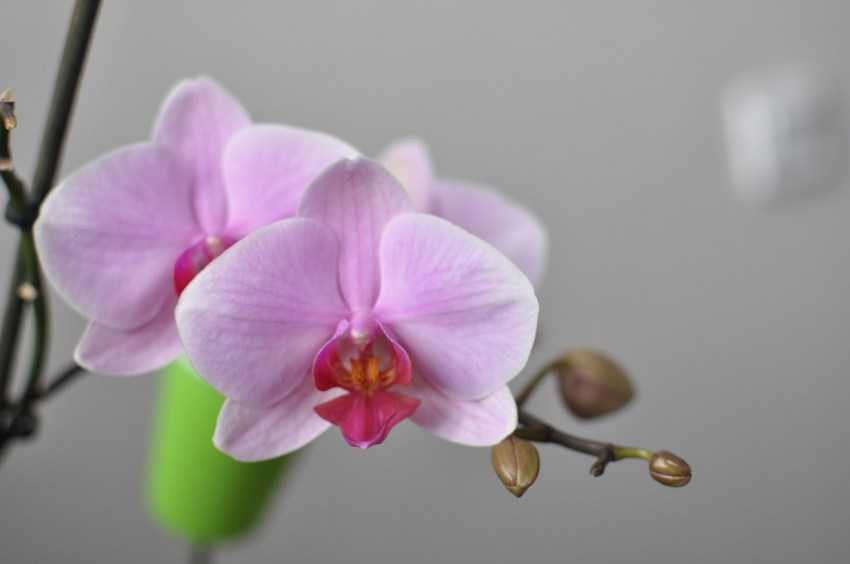 - Во время цветения поливать не обильно и редко. Когда орхидея отцветет, появятся новые росточки — полив восстановить до изначального уровня.