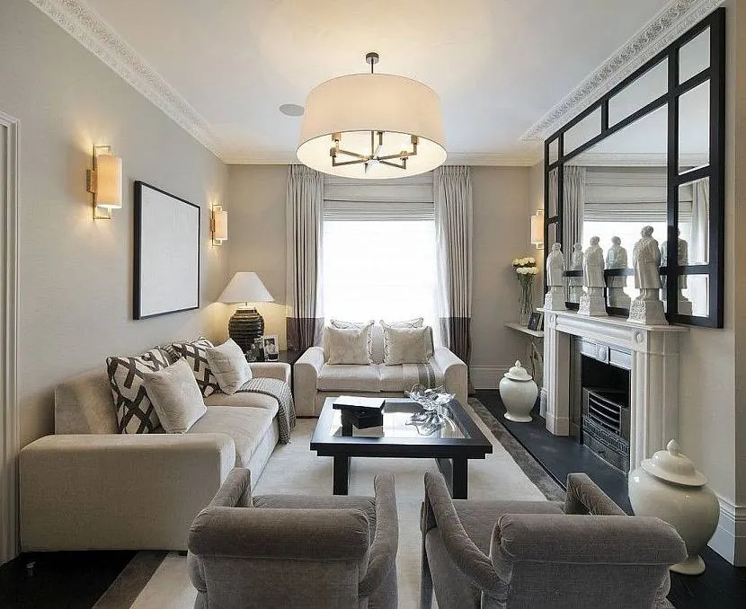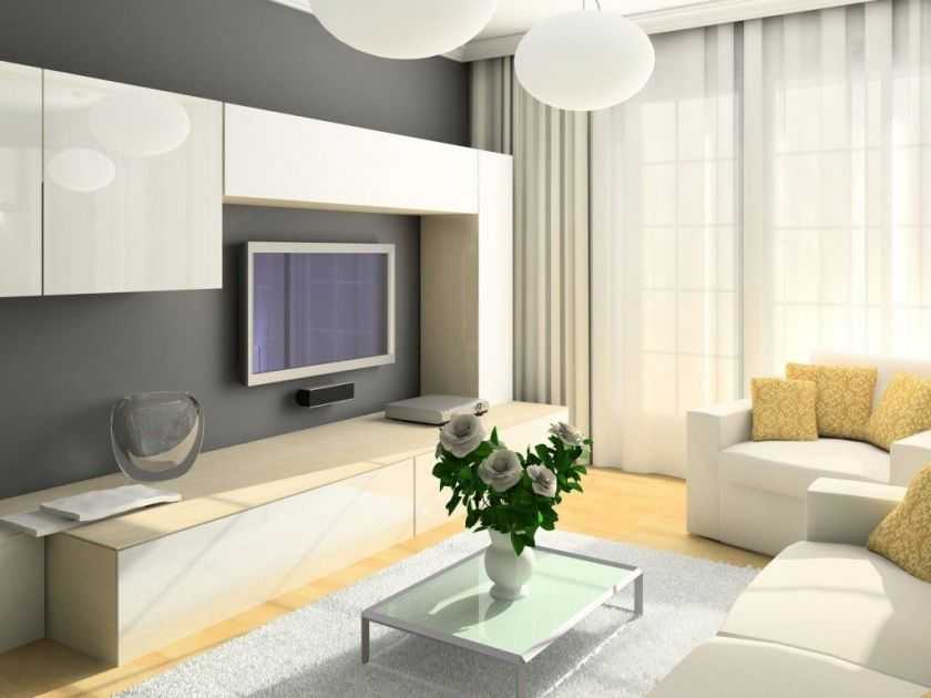 При дефиците свободного места не стоит перегружать интерьер мелочами и декором. Чтобы комната выглядела просторной, картины и фотографии монтируют максимально высоко. Дизайнеры рекомендуют повесить напротив окна зеркало или панно с отражающимися осколками. Прием создает иллюзию увеличения пространства и освещения.