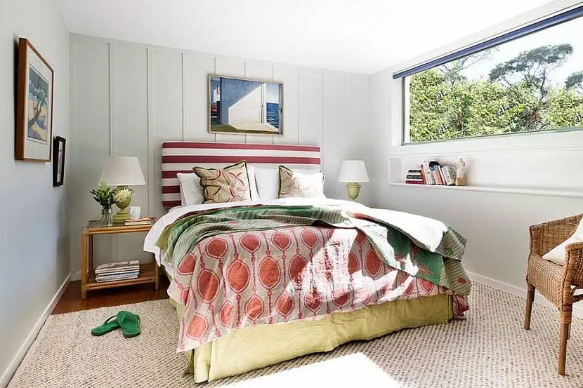 Парные компоненты расставляют на одной оси, часто напротив один другого. Главным местом выбирают фокусную точку (кровать, журнальный стол, декоративный светильник). Функцию элемента часто переносят на угол или окно. Мебель ставят на одинаковой дистанции от центра с двух сторон.