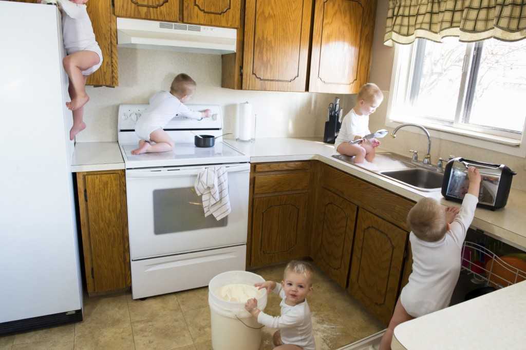 - оставьте на кухне только то, что вам нужно — минимум мебели и вещей. Так будет проще наводить порядок в хаосе, который образуется после детских забав;