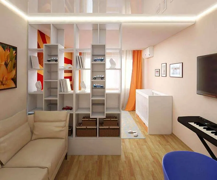 Фотогалерея: варианты зонирования в дизайне гостиной, спальни и детской