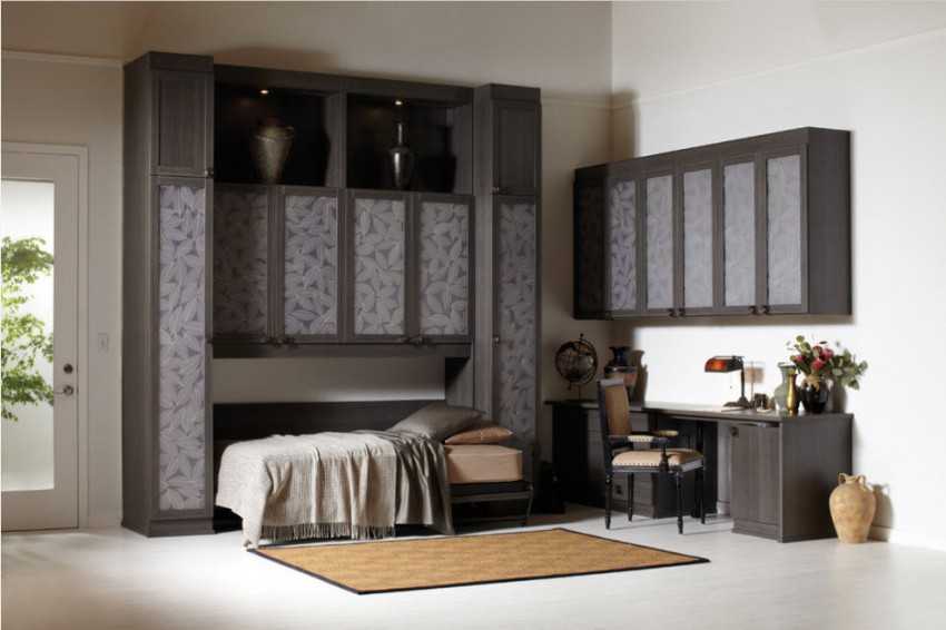 Для тех помещений, где полноценную постель невозможно разместить из-за ограниченного пространства, целесообразно установить кровать-трансформер. Днем она поднимается и выглядит как панель на стене, не загромождая пространство. Ее украшают картинами или панно, так что если о секретной койке не знать, то никогда и не догадаешься, что она есть.