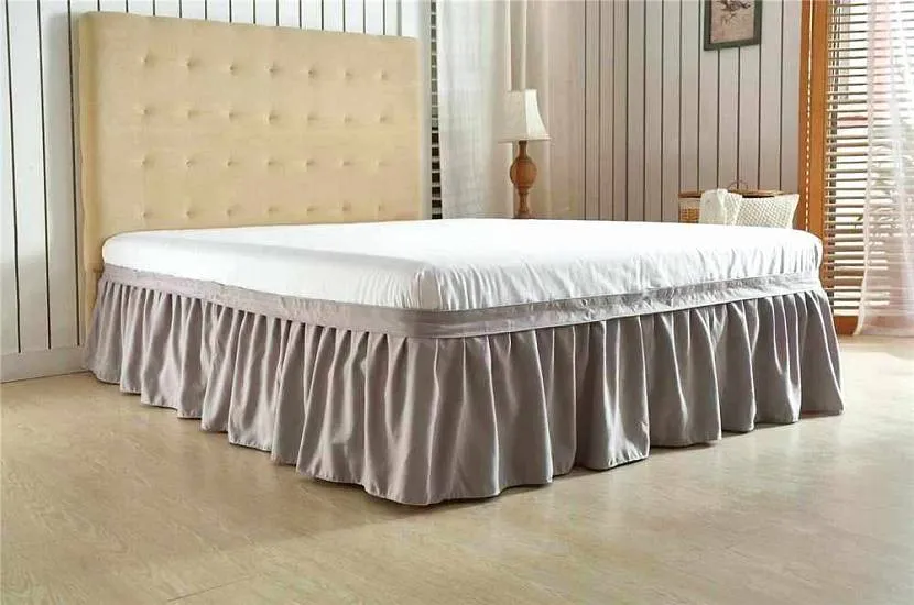Кроватный подзор (юбка). Необязательная деталь, которая, однако, делает комнату более уютной. Он имеет вторую, утилитарную функцию — скрывает пространство под кроватью, где часто хранятся вещи. Юбку надевают на пружинное основание кровати, равномерно распределяя по периметру.