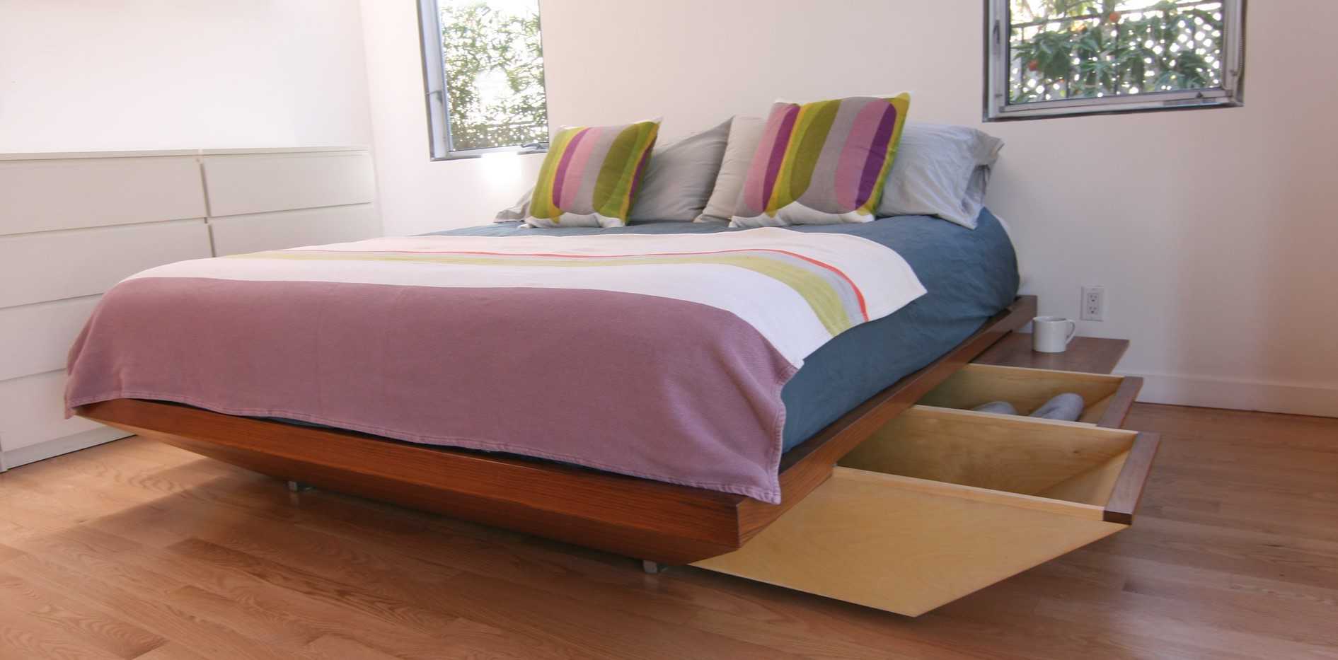 Удобные выдвижные ящики под кроватью можно использовать для хранения сезонных вещей