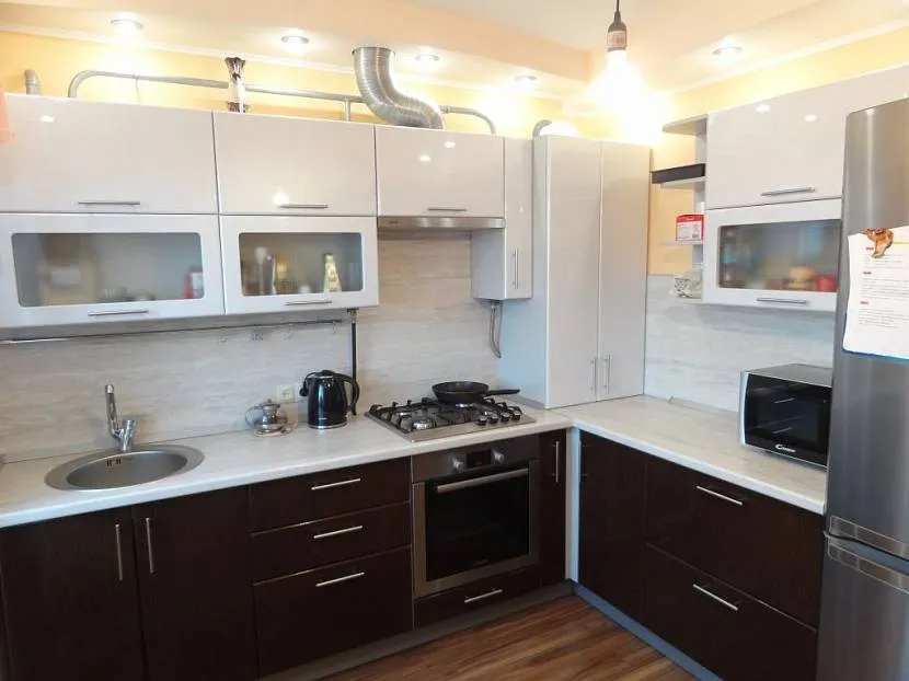 При проектировании дизайна кухни с газовым котлом на стене важно учитывать особенности помещения и варианты расстановки мебели. Легко реализуемым способом является монтаж газового котла в нише между предметами мебели; удачно, если котел получится установить в углу кухни, между навесными шкафами