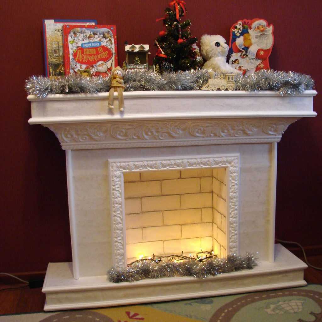 Когда основная конструкция будет собрана, можно приступать к её отделке и декорированию. Существует множество вариантов красивого украшения каминов. Идею можно найти среди декора настоящих конструкций и уже готовых решений из картона.