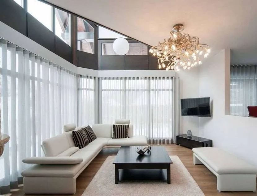 Рациональное. Где бы ни висела люстра, она должна быть на высоте не менее 2,1 м — выше самого необычного человеческого роста. Низкое расположение может стать помехой при совершении резких движений, танцев, эмоциональном общении. Но есть исключения — можно повесить светильник немного ниже над мягким уголком, столом для чтения или обеденным столом.