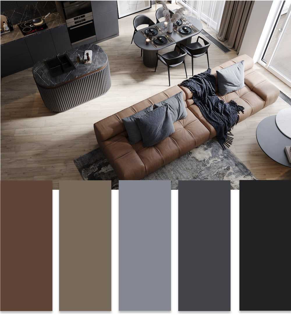 - Коричневые. Цвет может быть холодным, с выраженной долей серого, или интенсивным, как цвет обожжённой глины. Актуальный коричневый вызывает яркие живые ассоциации и полон природного тепла.