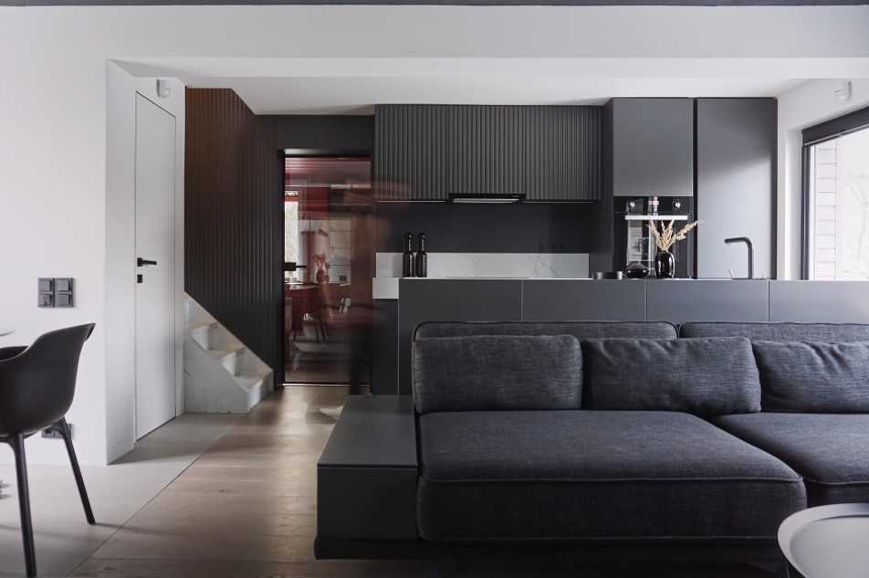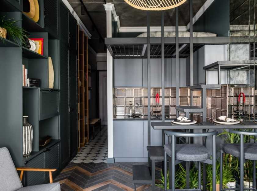 Динамика. Особенностью динамичных современных интерьеров служит урбанистическая тематика, предполагающая применение инновационных материалов, четкой геометрии в линиях, а также дополнительные детали с чертами индустриального стиля: металлические сетки на мебельных фасадах, массивные потолочные светильники. В цветовом решении часто присутствует контрастные оттенки.