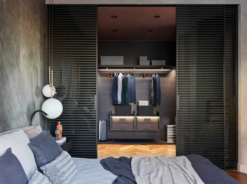 Особый интерес для современных дизайнеров и яркой атмосферы, вдохновленной стилем жизни, вызывают прозрачные металлические рамы. Они привносят динамику, городскую атмосферу в любую обстановку и придают некий энергичный характер композиции спальни — отличная идея для спальни активного мужчины.