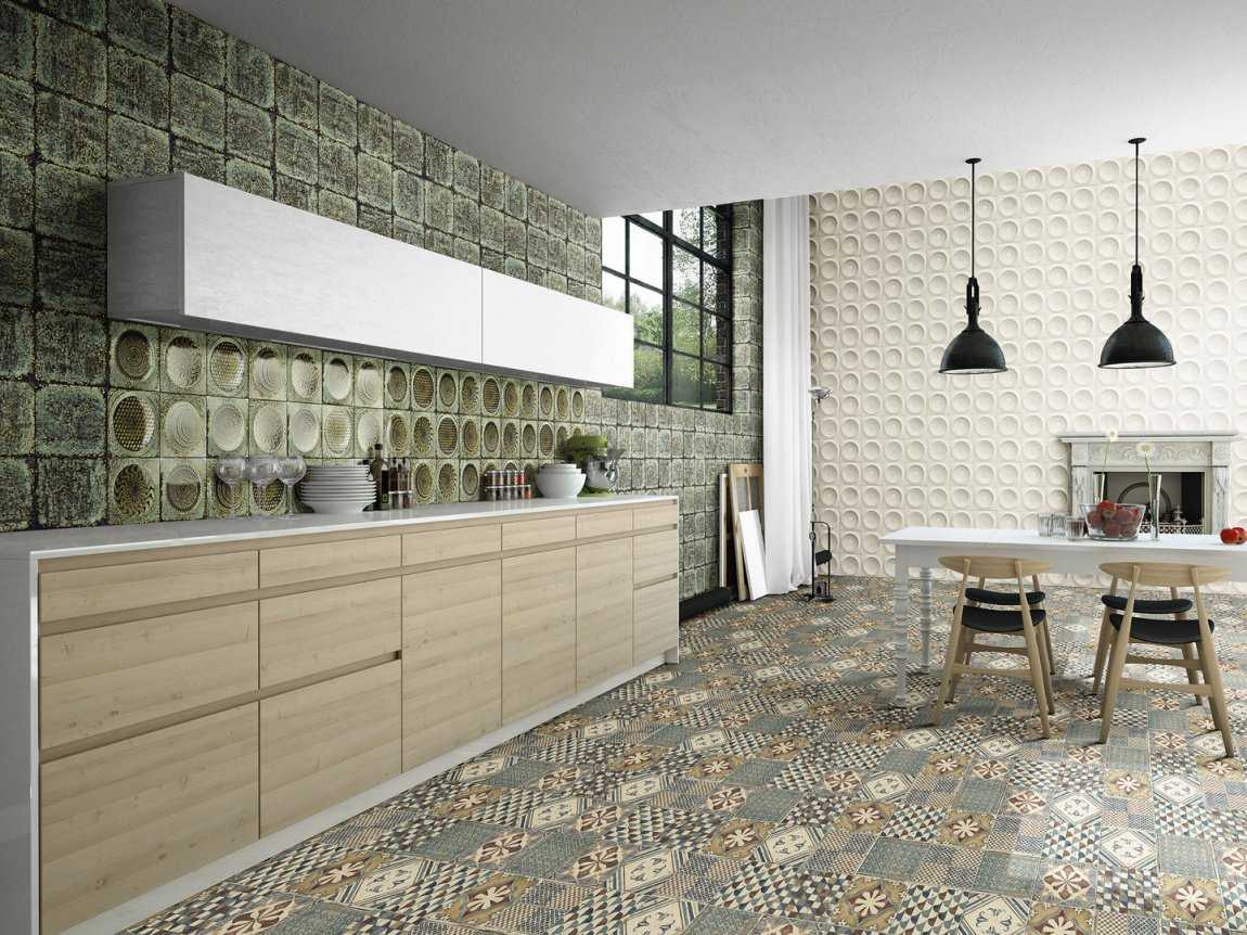В модном интерьере 2022 тактильными свойствами должны обладать не только текстиль и мягкая мебель. В моде керамическая плитка с ярко выраженным рельефом, которая отвоёвывает стены на кухнях и в ванных комнатах у классического «кабанчика» и неистребимого пэчворка.