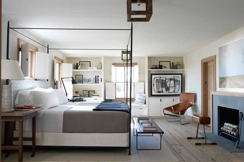- спальня — в этой комнате камин можно устанавливать в нескольких случаях: площадь комнаты большая, спальня совмещена с гостиной, стиль интерьера подразумевает использование камина;
