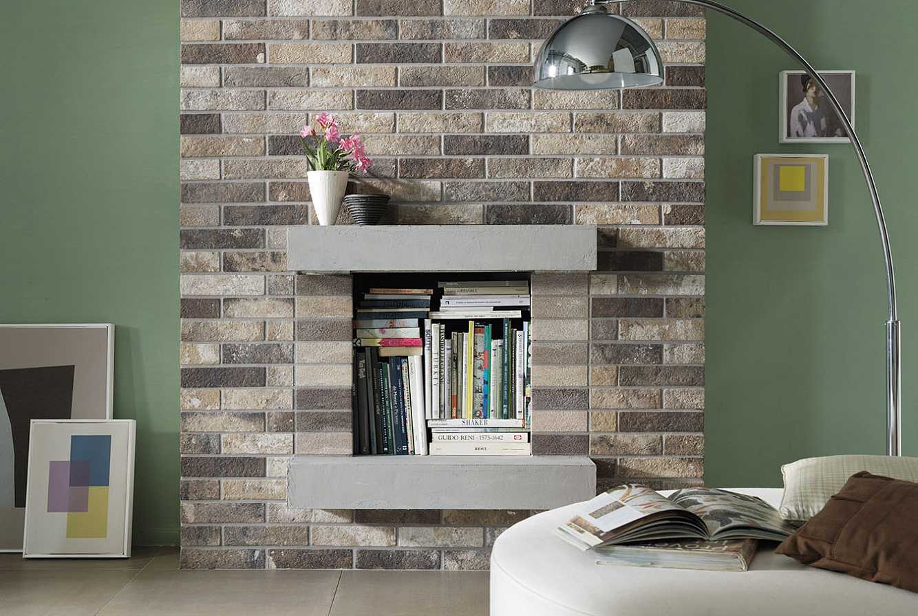 Такой материал похож на тоненькую имитацию самого настоящего кирпича. Его укладывают на клей, как плитку, и по свойствам он очень похож на нее, но выглядит почти как натуральный материал. Именно такой искусственный кирпич в интерьере смотрится лучше всего.