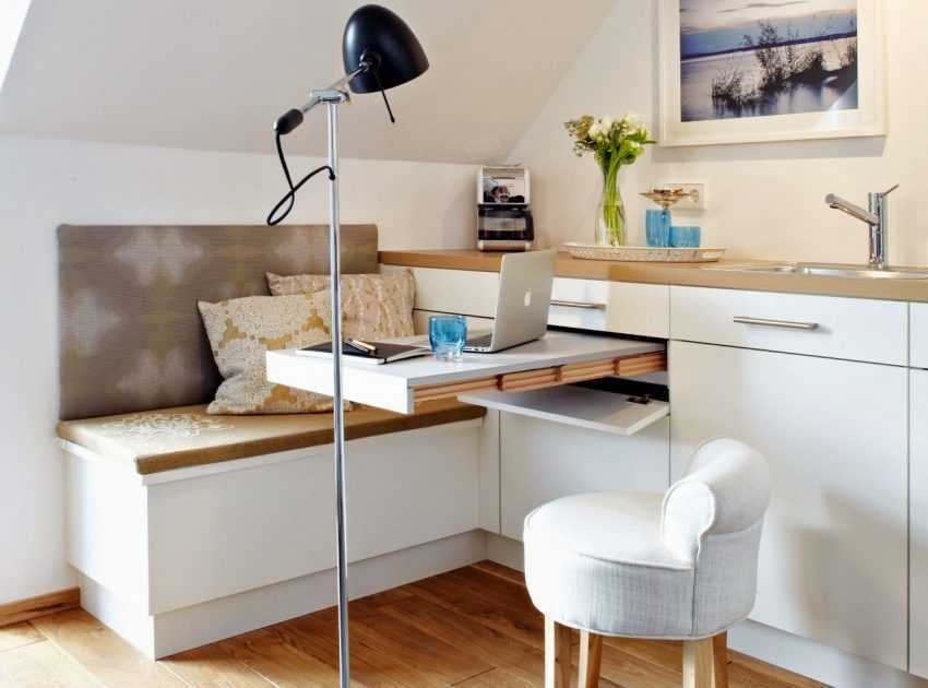 В небольшой кухне рекомендуется расположить угловой диванчик. Такая конструкция рационально задействует полезное пространство и отлично подходит для того, чтобы комфортно спать или обедать в кругу семьи. Для маленькой комнаты подойдет модульная практичная мебель, раскладные, откидные и выкатные модели.