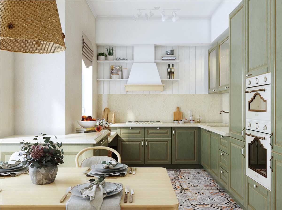 Кухня прованс в зеленых оттенках