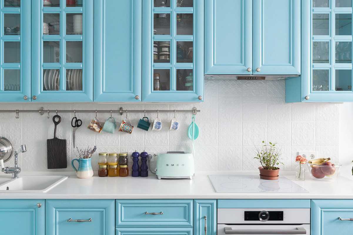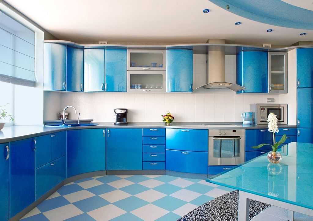 Современная кухня голубого цвета