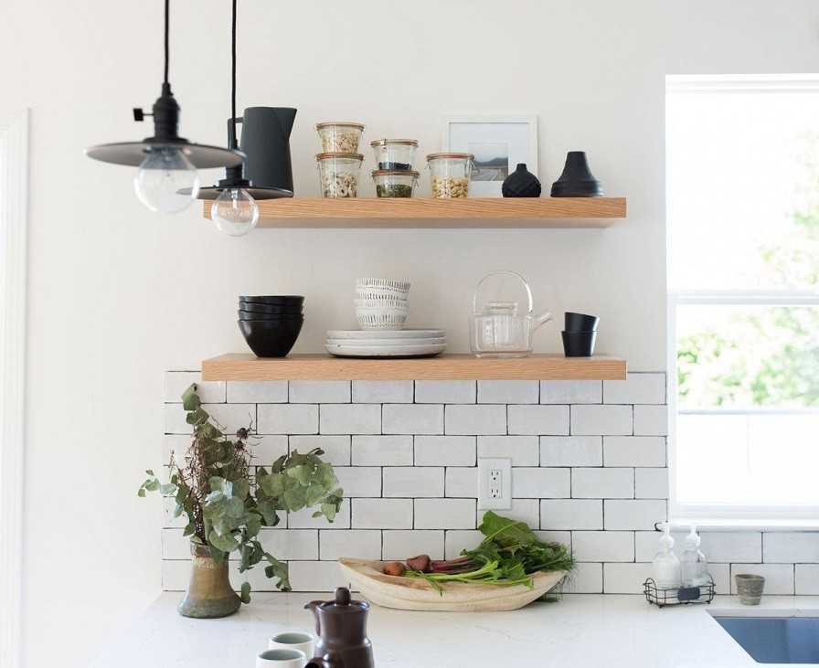 Можно организовать пространство на кухне и без помощи опытных дизайнеров. Проще всего провернуть такое с полками, ведь даже самые простые решения могут выглядеть эстетично.