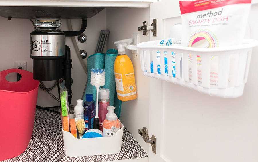 Или организовать место под раковиной. В том числе посредством контейнеров.