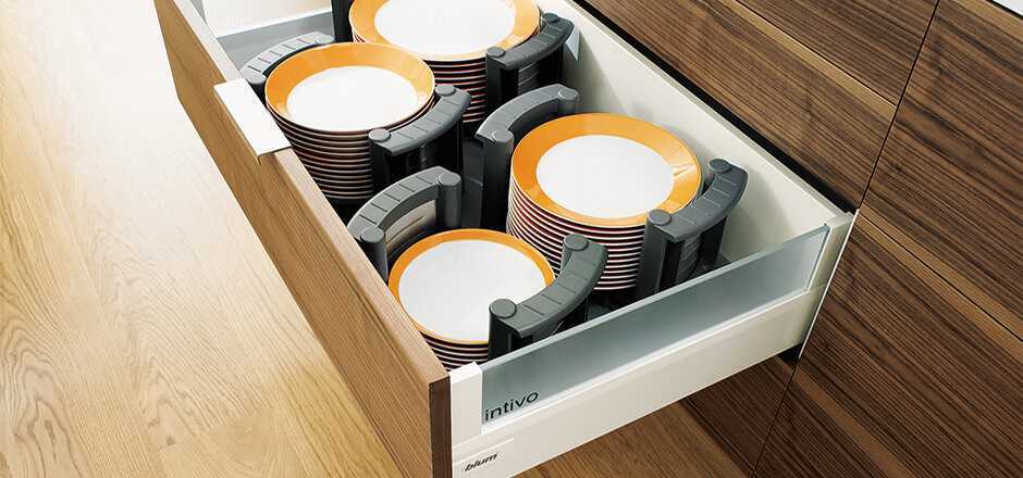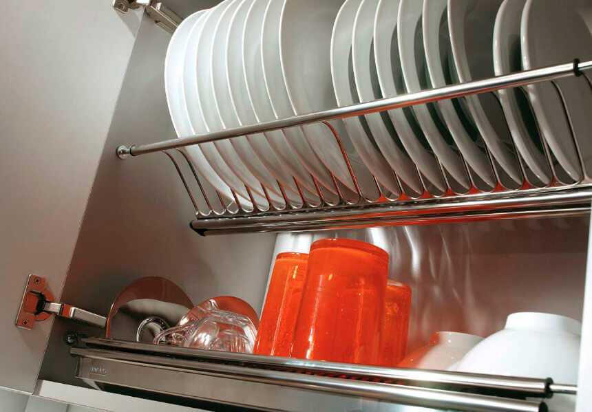 Виды систем хранения посуды для кухонных шкафов