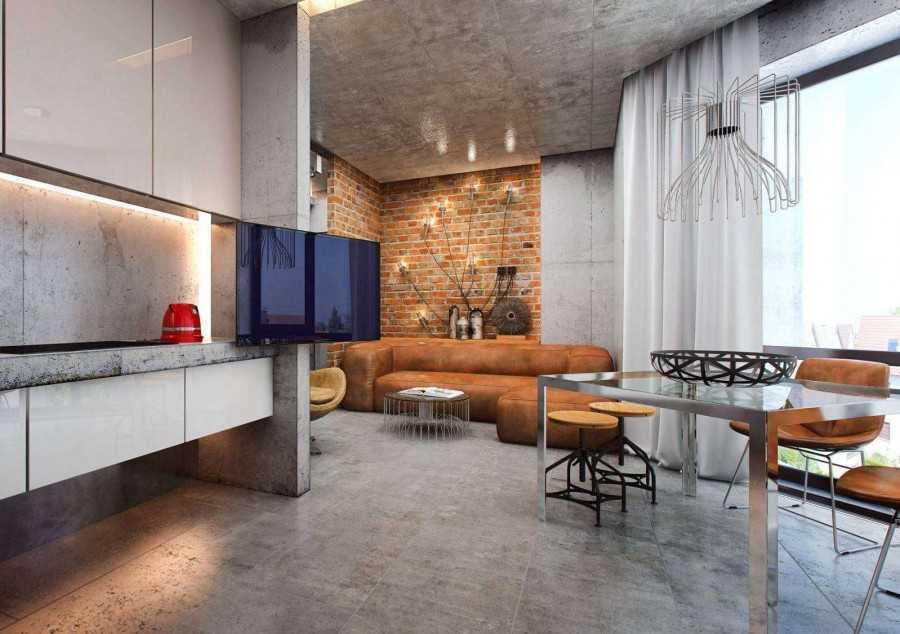Основными материалами стиля лофт являются кирпич, бетон, стекло, грубая штукатурка