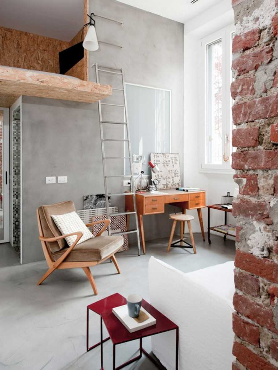 Бетонные стены в интерьере в стиле лофтИсточник legko.com