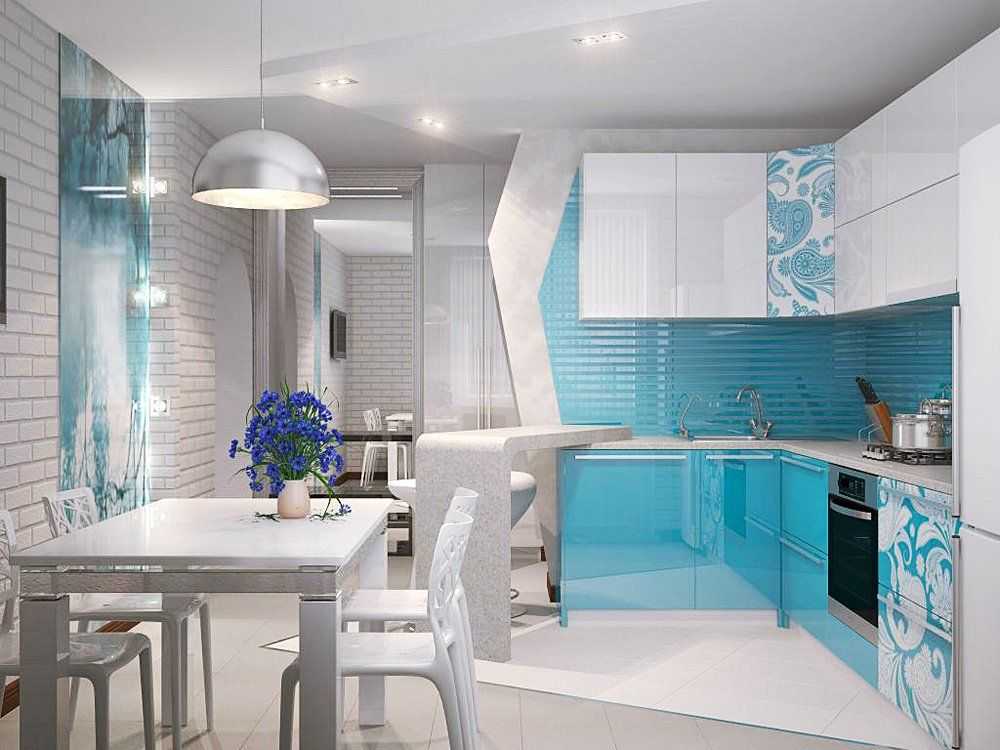 - Голубые или синие оттенки подойдут для более спокойных личностей, но все же выглядит необычно, хорошо гармонирует с белым цветом и не требует внедрения ярких пятен.