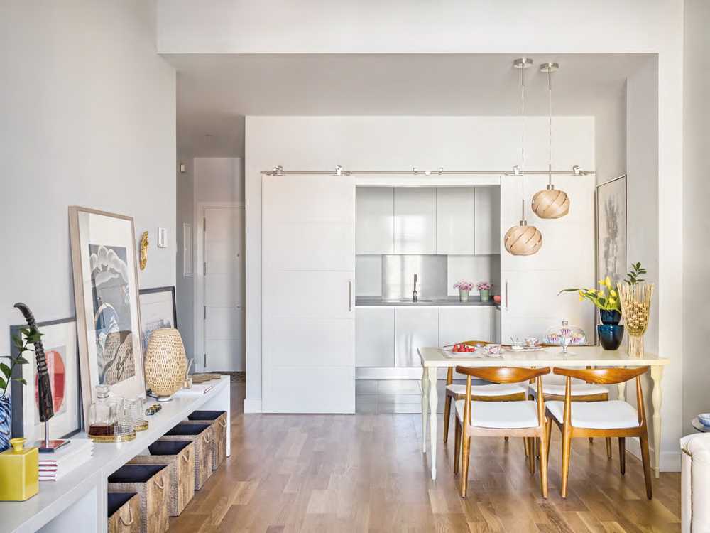 В остальных случаях, наоборот, рекомендуется объединять пространство. Так, тесную кухню стоит совместить с гостиной или коридором. Тогда в одной части только готовят еду и моют посуду, в другой – отдыхают и принимают пищу.