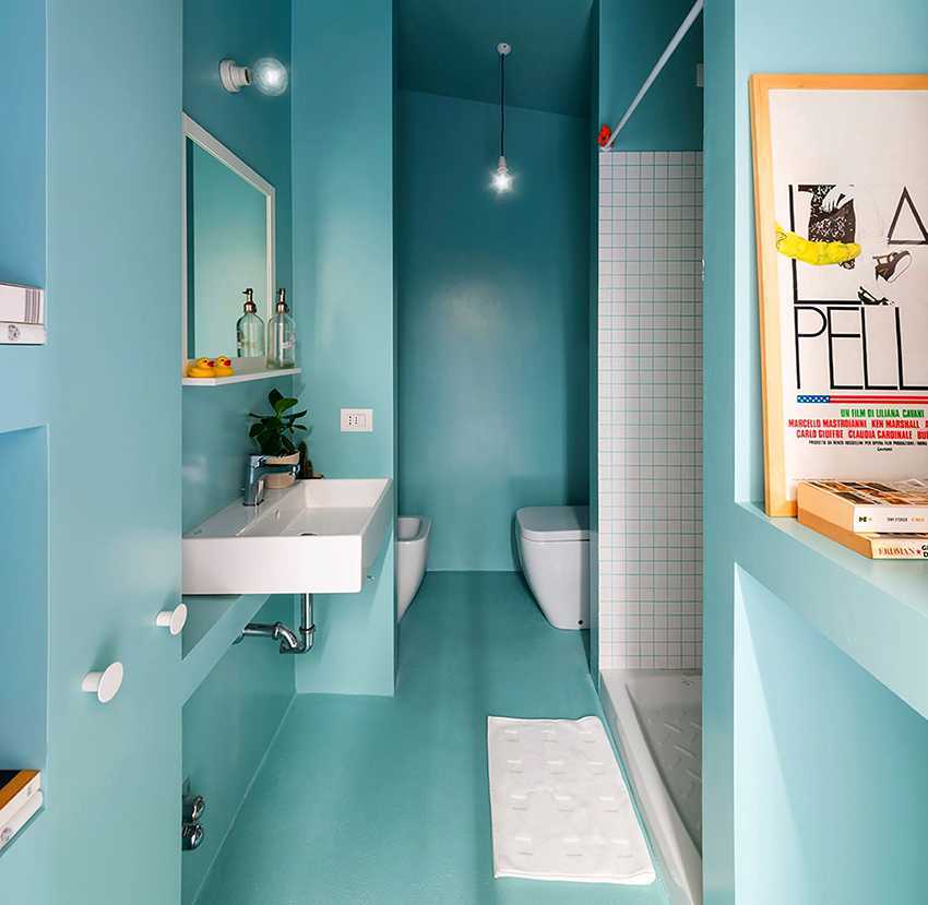 В интерьере ванной очень часто используются оттенки голубого и синего