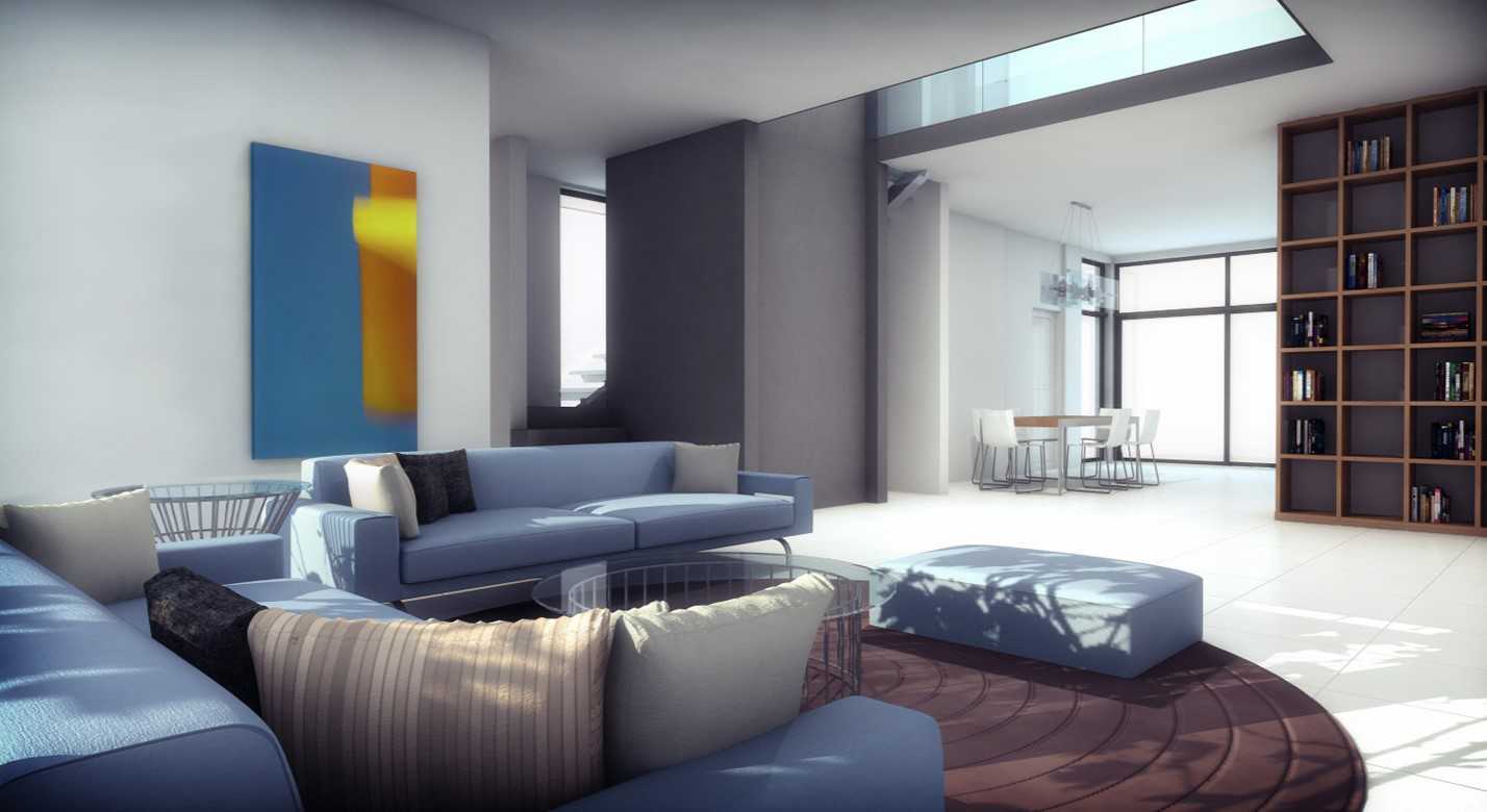 Чтобы визуально «вытянуть» стену, располагайте мебель в форме квадратов в одну линию.