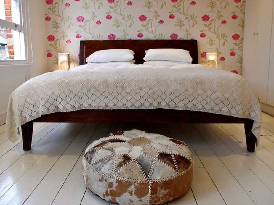 - Спальня. Желательно использовать большой размер, на котором поместится кровать, тумбы и другие близстоящие предметы. Альтернатива — две маленькие дорожки вдоль каждого края.