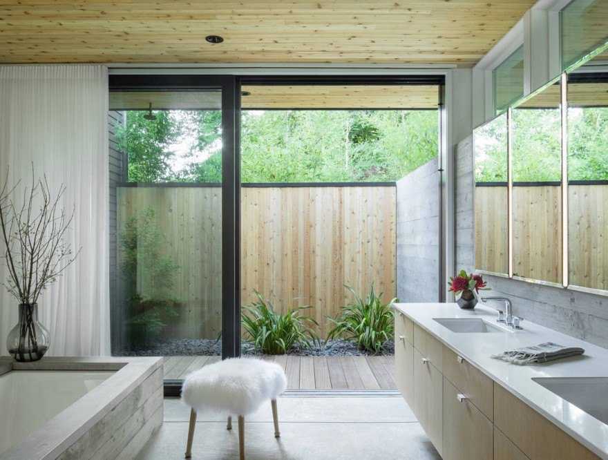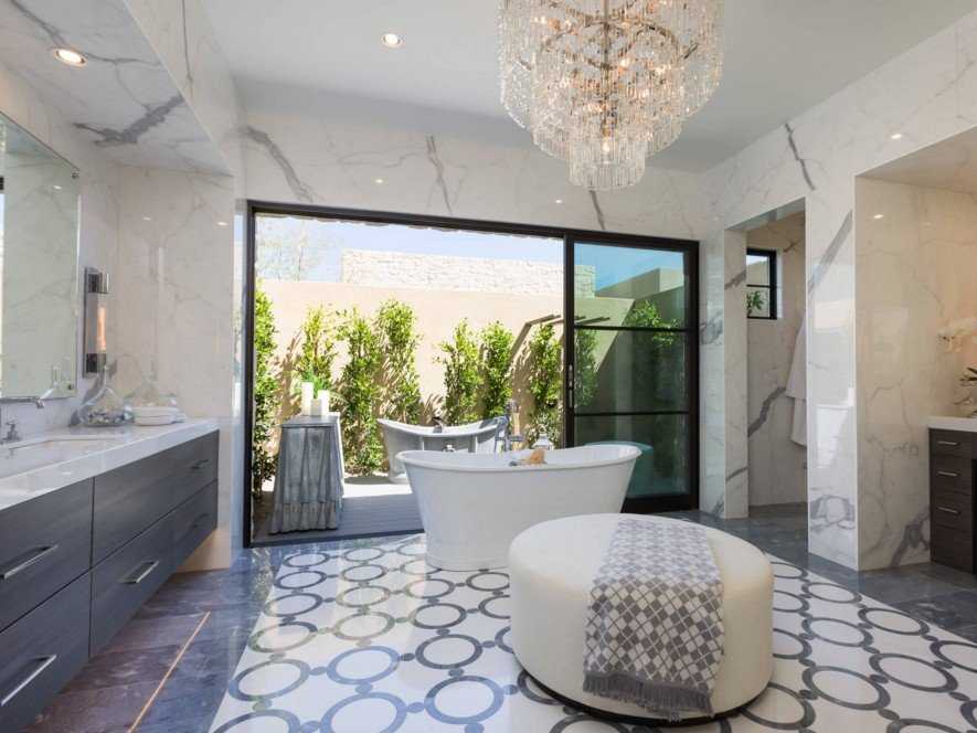 Справились ли дизайнеры с этой задачей? На наш взгляд, эффект потрясающий, и этот дизайн ванной комнаты — один из самых красивых, которые мы видели за последнее время. Он не только прекрасно иллюстрирует современные тенденции, но и излучает ауру роскоши и уюта одновременно, чего нелегко достичь.
