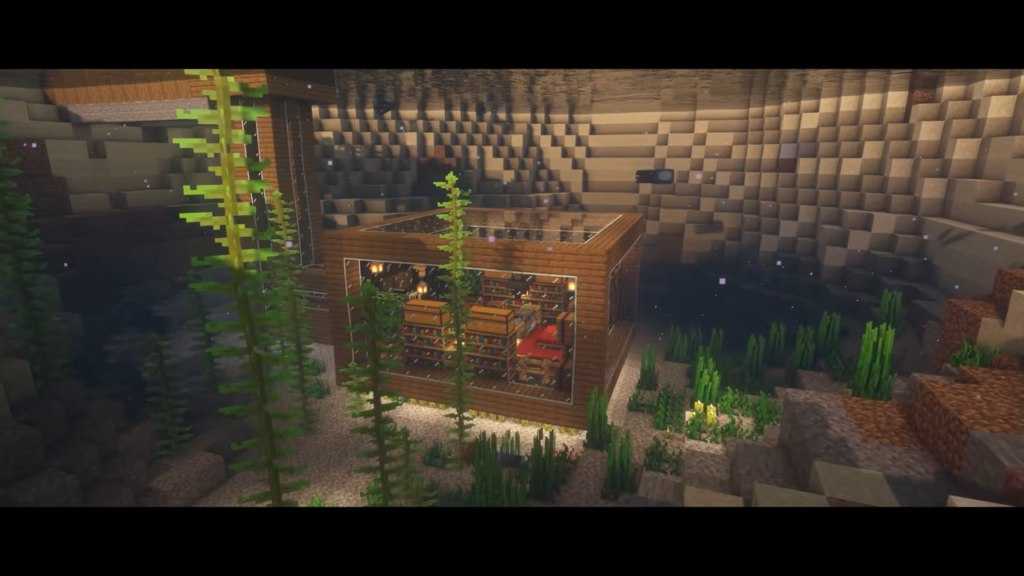 Если вы хотите иметь полный вид на морское дно, почему бы не использовать стеклянный купол, чтобы не упустить ни одной детали? Последняя идея подводной базы Minecraft в нашем списке снова исходит от случайного Стива Гая, и ее очень легко создать. Как всегда, самой большой проблемой будет не утонуть, когда вы строите стеклянные кольца, закрывающие купол. Хорошая дополнительная идея — найти поблизости кораблекрушение, чтобы органично вписать его в деревянный интерьер.