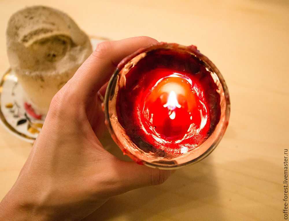 Поджигаем фитиль красной свечи и ждем, пока парафин растает.