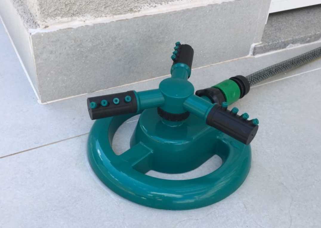 Распрыскиватель воды позволит увлажнить почву на 4-5 метров вокруг себя без вашего участия. Достаточно подключить его к водопроводу, установить в нужном месте.